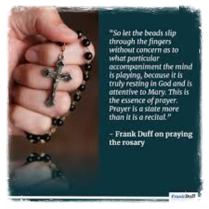 At the heart of the Legion of Mary is its prayer and devotional system. Every baptized Christian is called to a life of service in Christ, and thus, the Legion of Mary calls upon its members to enter into and in the practice of a prayerful and sacramental life. Imitating the saints, the Legion exhorts its members to pray with fervor and constancy. It is through prayer, particularly, those of its auxiliary members, that the spirit of apostleship would grow upon. Frank Duff, the founder of the Legion, exemplified this commitment to a a prayer life. He prayed the Breviary or Liturgy of the Hours daily, prayed the Holy Rosary, attended the Holy Sacrifice of the Mass and spent hours in the Adoration of the Blessed Sacrament. The devotional aspect of the Legion is reflected in its prayers.